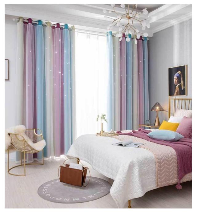 カーテン レースセット 星 透かし グラデーション 姫系 可愛い レースカーテン 遮光 断熱 保温 省エネ 2重 一体型カーテン 防音 子供部屋 女の子 男の子 洗える 可愛い 星柄 星穴 透かし彫り ストライプ 洗える 寝室 リビング 居間 かわいい 気分転換 洗い替え 新生活