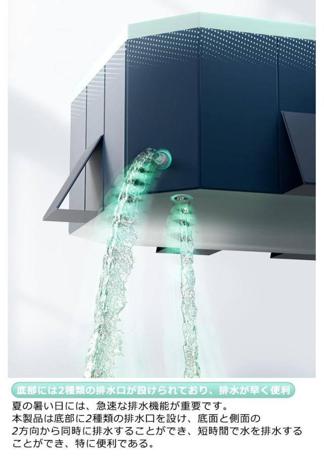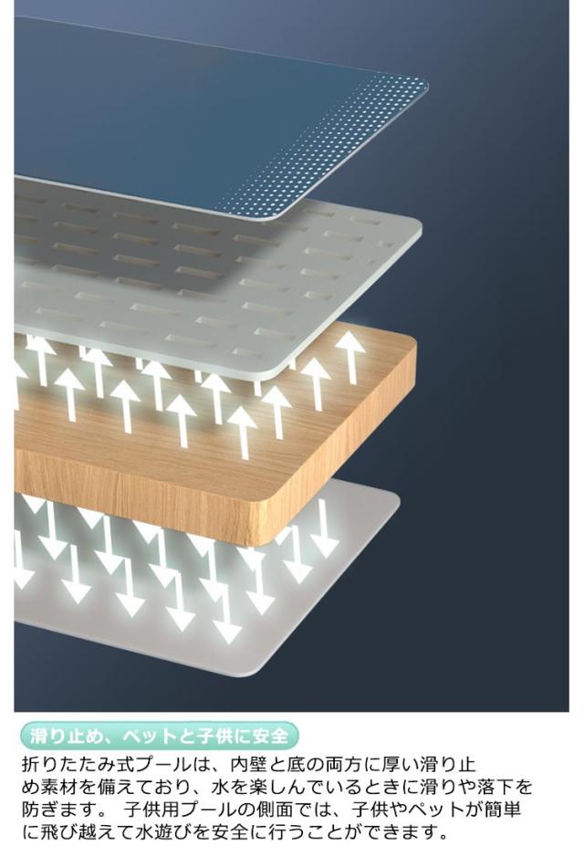 | 【使いやすさが魅力のプール】折りたたみプール、組み立て不要、めんどな空気入れする必要がなく、穴が開いて萎んでしまう心配もございません!わざわざ高価な電動エアーポンプを購入する必要もない!屋外でも室内でも使える、暑い季節に大活躍!普段使わないときは、折りたたんでコンパクトに収納! 【滑り止め、ペットと子供に安全】折りたたみ式プールは、内壁と底の両方に厚い滑り止め素材を備えており、水を楽しんでいるときに滑りや落下を防ぎます。 子供用プールの側面では、子供やペットが簡単に飛び越えて水遊びを安全に行うことができます。 【底部には2種類の排水口が設けられており、排水が早く便利】夏の暑い日には、急速な排水機能が重要です。本製品は底部に2種類の排水口を設け、底面と側面の2方向から同時に排水することができ、短時間で水を排水することができ、特に便利である。 【広範な用途】屋外プール、バスタブ、おもちゃの箱、1台3役で1年中使える!お子様の水遊び、大きな物を洗う、ペットバス、おもちゃ入れ、まだまだ多くの用途があります。屋内、お庭、ビーチ、屋外などいつでもどこでも簡単に使える。 | |