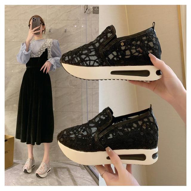 スニーカー インヒールスニーカー レディース シューズ 靴 スリッポン レース 花柄 透け感 フラット 大きいサイズ 黒 厚底 インヒール2cm ヒール3cm ローカット プラットフォームスニーカー 厚底スニーカー 結婚式 和装 シースルー 春 夏