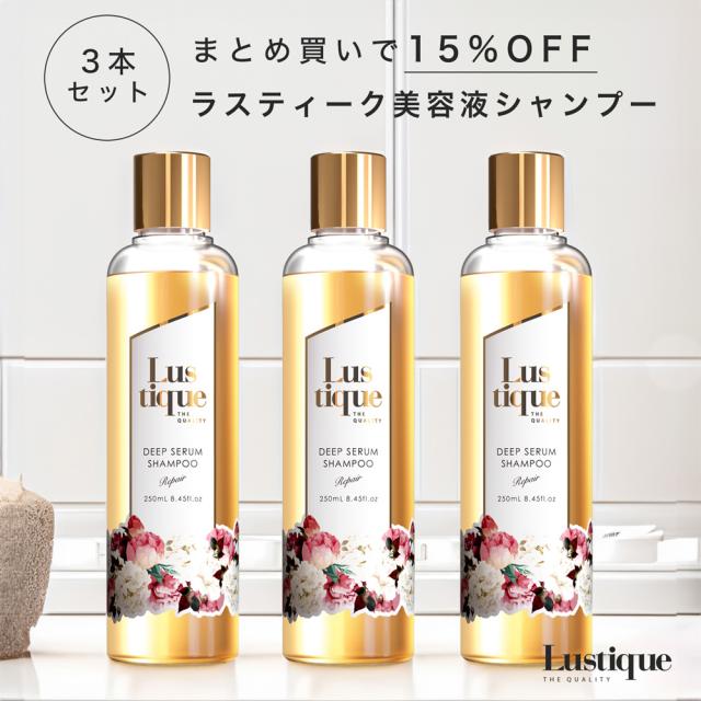 【"美容液から作られた"ラスティーク《Lustique》ディープセラムシャンプー リペア(250mL)で、傷んだ髪を徹底補修しながら洗い上げます。】◆きめの細かい泡「濃密コラーゲン(P.P.T)」×マイルドな優しい泡「アミノ酸」洗浄で、たっぷりの美容成分を髪の内部に入れ込みながら、しっかりと洗い上げます。◆独自開発"デュアルリペア"《内部浸透補修》浸透性が高い「セラキュート-V」が髪の内部に浸透し、傷んだ箇所に反応し補修します。《キューティクル補修》「加水分解ケラチン」が髪の表面に保湿性の高い保護膜をつくり、髪を守りながら補修し続けます。◆理想的な「水分×油分」が美しいツヤ髪の鍵、ヒアルロン酸、リピジュア、セラミド、アルガンオイル、椿オイル配合。