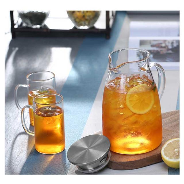 | 【冷水筒】【1500ml / 2000ml】【耐熱ガラス】【直火可】【洗いやすい】 高品質な耐熱ガラスで作ったガラスピッチャーなので、急冷と急熱も耐えます。 嬉しい耐熱仕様で、麦茶などの煮出しも可能!中まで手を入れて洗えて清潔! ガラスポットは透明感が良くて、中身が見え、お茶の色合いが目で愉しめ、残りの水量も一目瞭然、わかりやすいです。 麦茶、紅茶、ジュース、コーヒー、ミルクなどの飲み物を淹れたい時にご気楽にお使えいただけます。 耐熱ガラスので、温かい飲み物にも冷たい飲み物にも使える耐熱ガラス製のピッチャーです。 | |