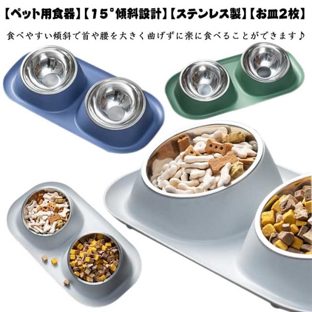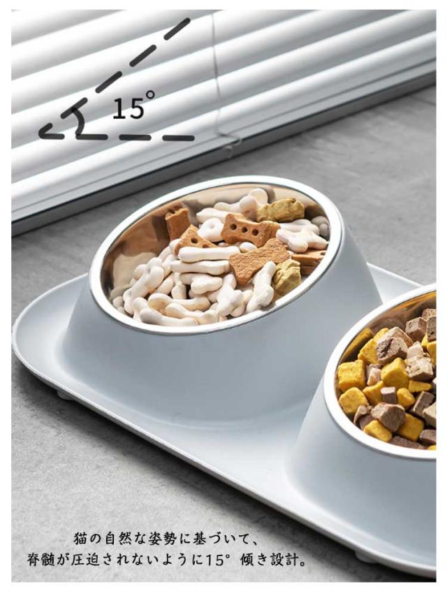 犬 猫 食器 食器台 傾斜 ステンレス ごはん皿 こぼれない ペットボウル フードボウル 食べやすい 取り外し 洗える ダブルボウル ペット フードスタンド フードテーブル 食器スタンド ペット食器 ペット用食器 15度 ネコ 小型犬 いぬ ねこ ペット餌入れ エサ台