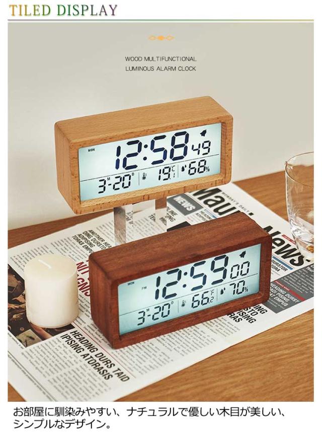 卓上時計?デジタル置き時計?木目調?日付表示?温度?湿度?卓上?北欧?デジタル?アラーム?木製?プレゼント?置き時計?目覚まし時計?ウッド?LED表示?カレンダー?光る?天然竹