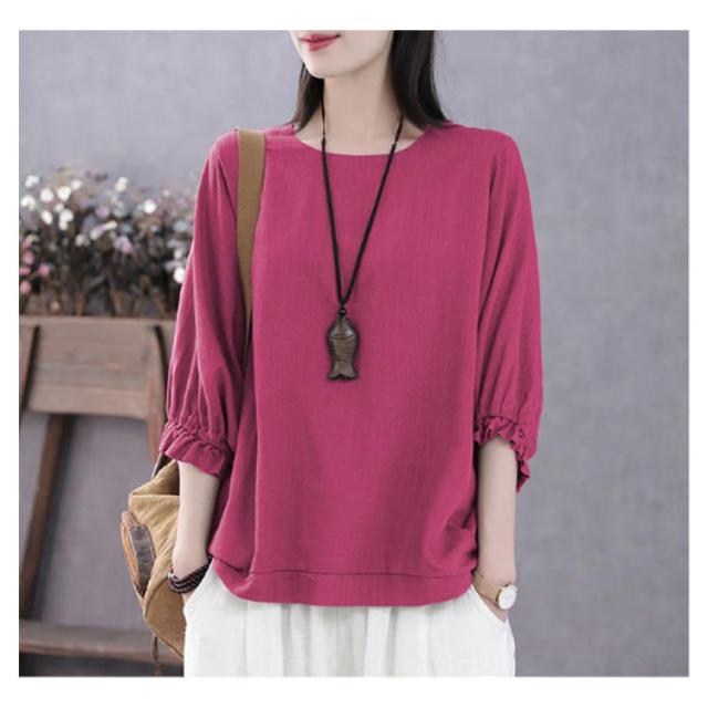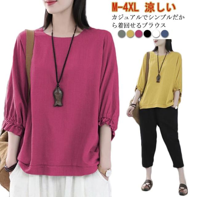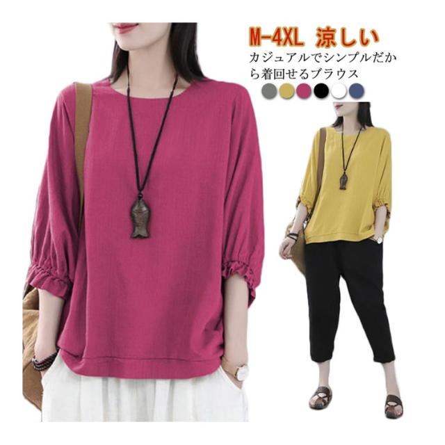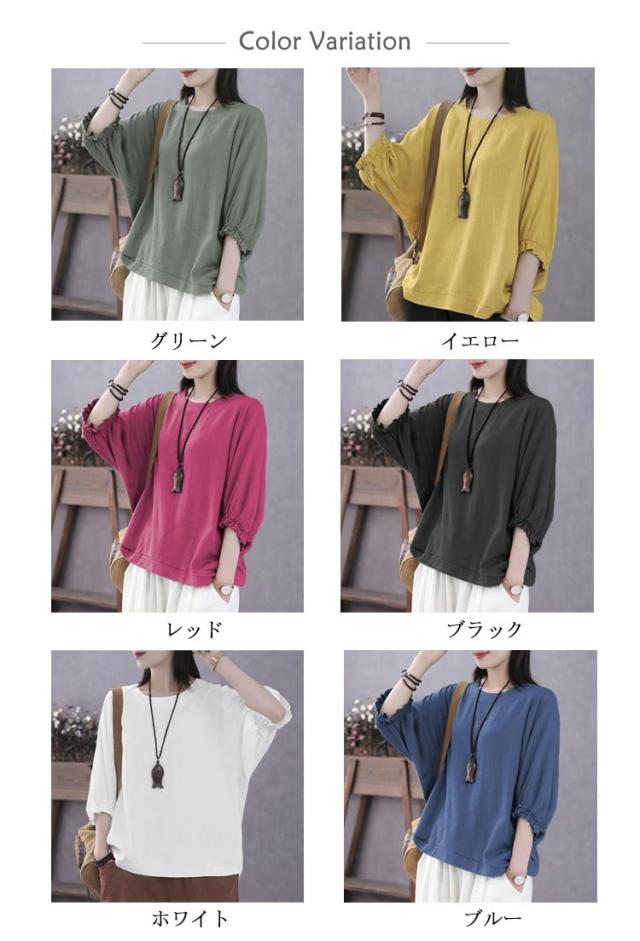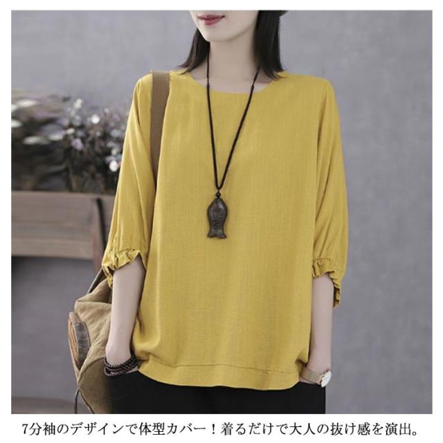 Tシャツ 7分袖 レディース ブラウス トップス カットソー カジュアル おしゃれ 快適 無地 薄手 涼しい ゆったり コーデ 春 夏 体型カバー 大きいサイズ シンプル 通勤 通学 20代 30代 40代 大人可愛い プレゼント ギフト 送料無料