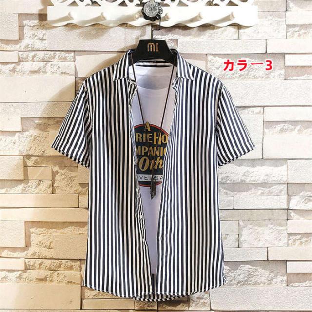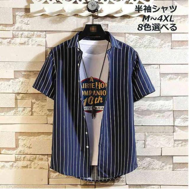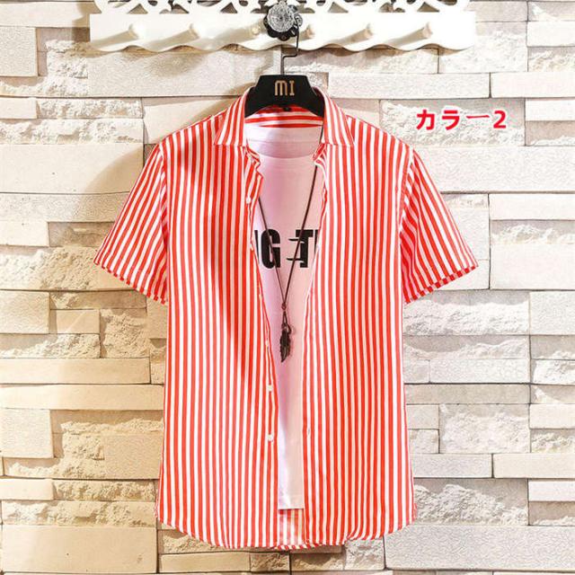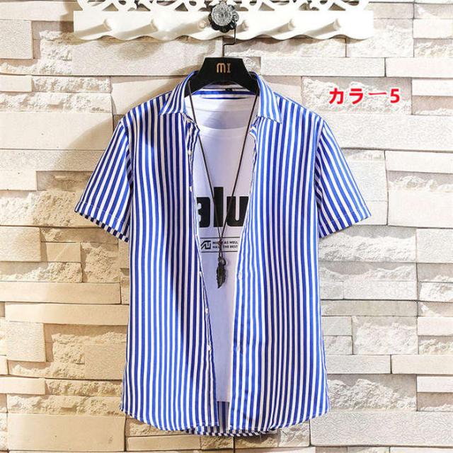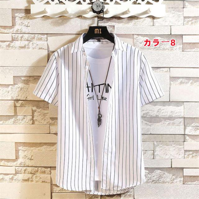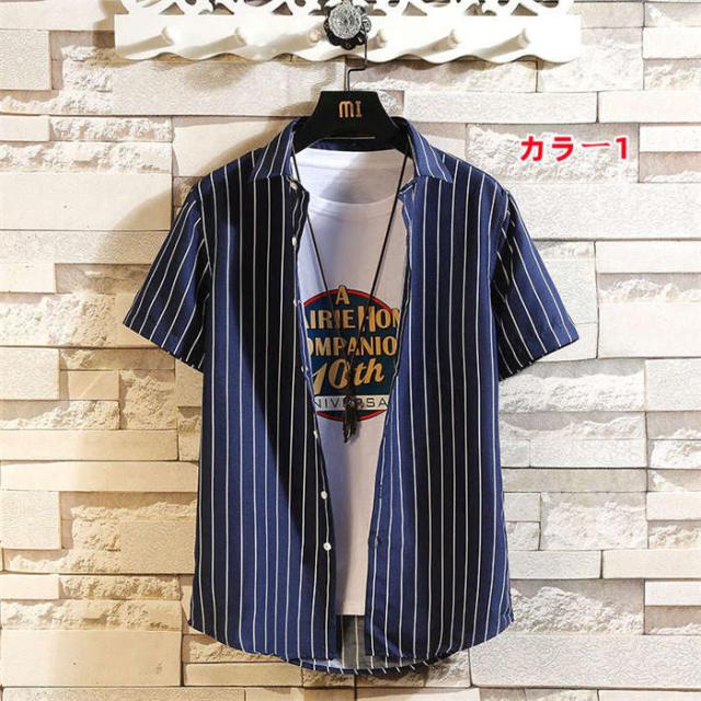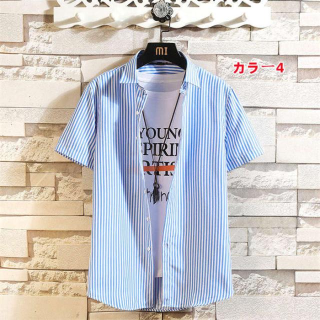 商品名:シャツ メンズ カジュアルシャツ 半袖シャツ 夏 トップス 立ち襟 スタンドカラー ストライプ柄 半袖 ストライプ カジュアル お兄系 ファッション オシャレ 通勤 通学 夏服 大きいザイズ おしゃれ ストライプシャツ 大学生 大人 普段着 高校生 お洒落 メンズファッション サマー 男性 送料無料