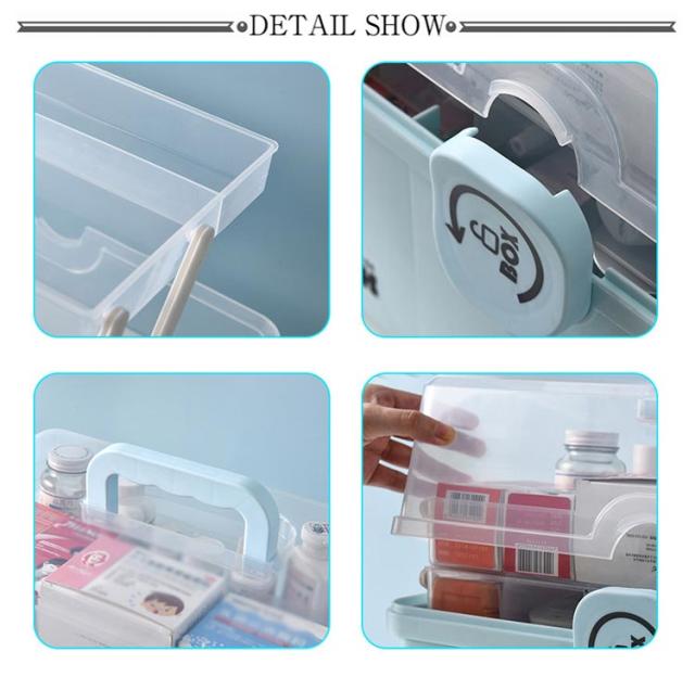 | 【大容量&コンパクトで収納便利】 【安心安全な造り】 【見やすく取り出しやすい】 【三段式家庭用薬箱は様々な需要にこたえます】 【多様な用途】 市販の薬収納ボックスや救急ボックス、工具箱よりはるかに大容量でおしゃれなた収納ケースです。 3段トレー付き工具箱のため沢山の物を綺麗に収納することが可能です。 コンパクトなため部屋のどこでも収納でき、持ち運びにも便利な大きさです。 開閉部分には「回転式安全ロック」を採用することでお子さんが不用意に開けて薬を飲みこんでしまうことを防ぎます。また、持ち上げる際にフタが開いて中身が全て落ちることを防ぎます。 フタは180度開閉タイプのため、どこに何をしまっているか一目で把握することができ緊急時でも直ぐに薬を取り出せます。 透明カバーのためフタを閉めた状態でも中身が一目瞭然です。 サイズLのは家庭での使用に最適です。部屋が狭い場合・収納する物が少ない場合・持ち運ぶことが多い場合は、サイズMに最適です。ご購入前に確認することをお薦めします。 薬箱以外にも、工具入れ、文具入れ、メイク道具入れ、おもちゃ箱、ソーイングボックス、ベイブレード ケース、釣具 収納、車載ボックス、ピットボックス、その他の様々な用途で活躍しています! | |