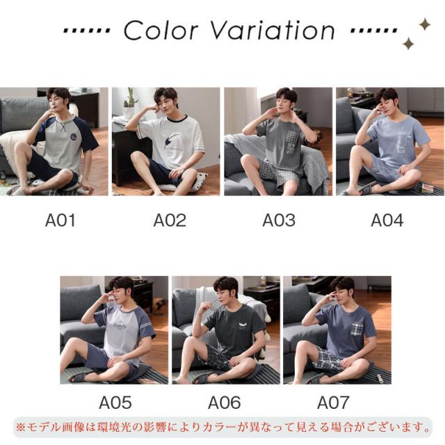 パジャマ メンズ プリント ルームウェア 部屋着 男性 半袖 ハーフパンツ 春秋夏 肌触りがよい 上下セットリラックスウェア おし