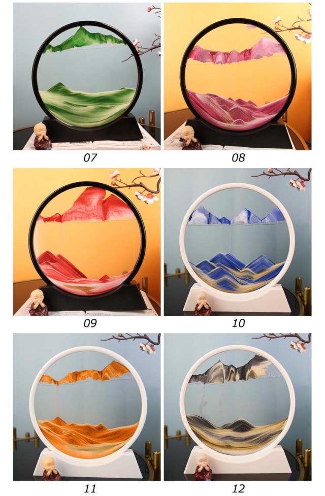 砂絵 サンドピクチャー 7inch 透明 円型 サンドピクチャー 砂のアート 砂時計 サンドアート 流砂絵 流れる おしゃれ インテリア 置き型 置物 置き物 癒し ギフト 飾り グラデーション モダン 砂絵 プレゼント