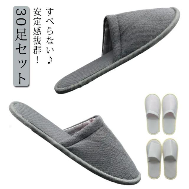 シリコン滑り止め付き 使い捨てスリッパ 30足セット 高級スリッパ すべらない 高級感ホテル 来客用 個包装 入院 介護 携帯スリッパ スリッパ 使い捨て エステスリッパ 滑り止め 前あき 前閉じ パイル 出張 オフィス