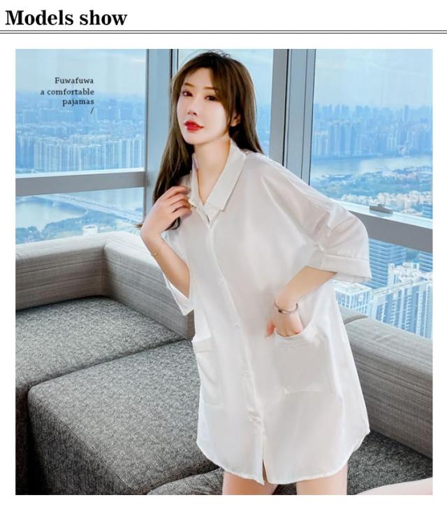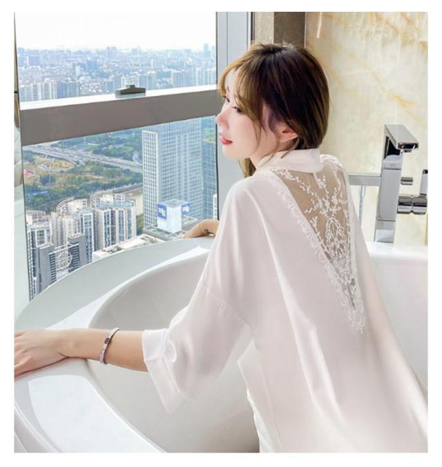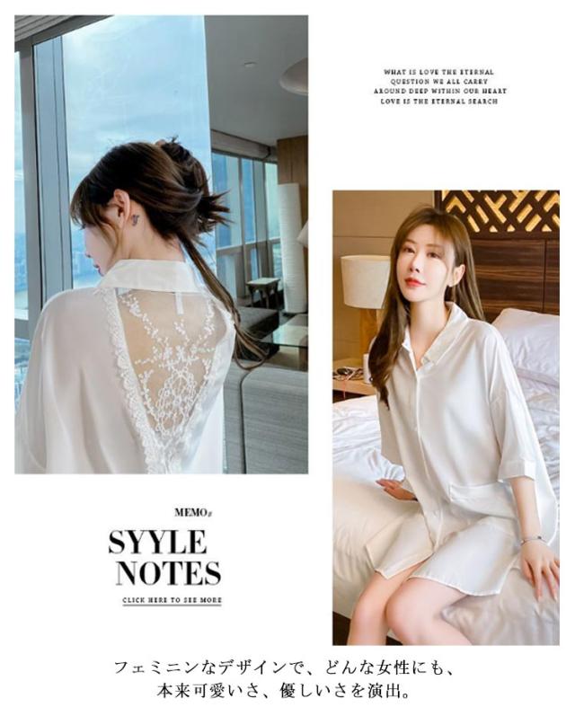 | きれいなシルエットを作って、バックレースのシャツワンピースルームウェアです。 使いやすい軽くて柔らかい生地だから着心地よく、締め付けがなく、オーバーサイズだから体のラインが隠せて体型カバーもバッチリです。 フェミニンなデザインで、どんな女性にも、本来可愛いさ、優しいさを演出。 | |