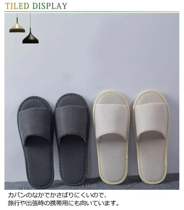 | 飛行機内や海外のホテルに滞在中、学校の授業参観などスリッパが必要な方におすすめ パイル生地を使ったスリッパで、とても肌ざわりがよく、ふわふわな履きごこちを実感できます。 スリッパの底面にはEVA素材を使用。フローリングの床でもすべりにくくスムーズに歩けます。 カバンのなかでかさばりにくいので、旅行や出張時の携帯用にも向いています。 インテリアとなじみがいいカラーなので、来客用にしてもおしゃれです。 つま先が前開きタイプと前詰まりタイプの2種類から選べます。 | |