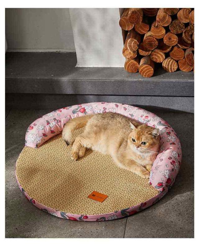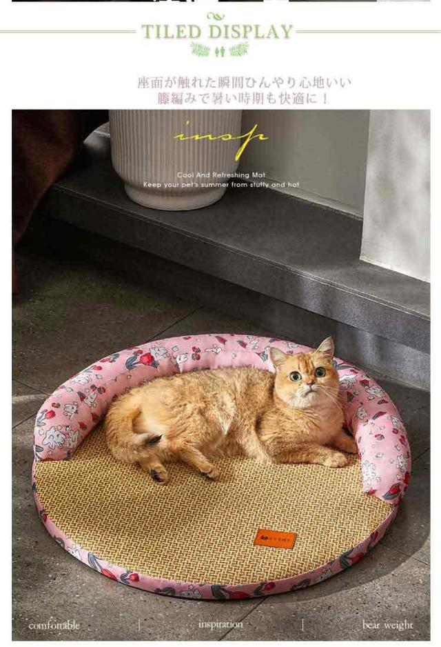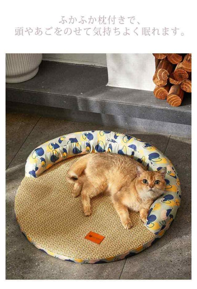 ペットベッド 夏用 猫 犬 ひんやり クール ソファベッド 丸形 籐編み 涼しい 涼感 猫用ベッド 犬用ベッド 熱中症対策 通気性 接触冷感 夏用ベッド 暑さ対策 あごのせ 枕付き 滑り止め 洗える 可愛い 快適