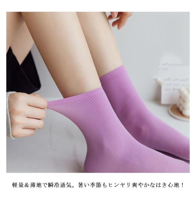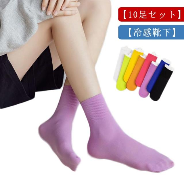 10足セット 接触冷感 靴下 ひんやり ソックス 冷感靴下 夏 レディース くつ下 涼しい ソックス クール 冷感 蒸れない 臭わない 通気性 速乾 抗菌 防臭 夏用 薄手 無地 送料無料 クルーソックス カジュアルソックス
