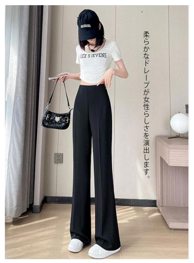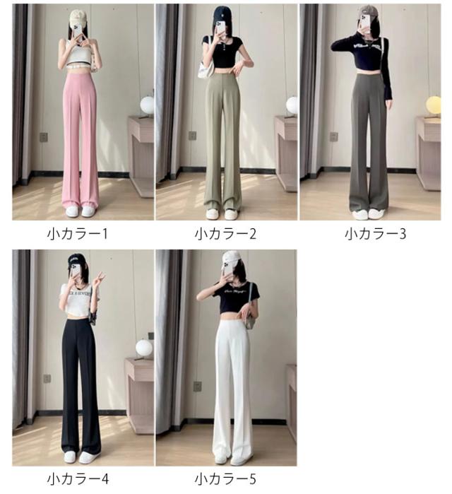 ワイドパンツ レディース ハイウェスト 春夏 アイスシルクパンツ ストレートパンツ 接触冷感 薄手 スラックス ルーズ 長ズボン ロングパンツ ゆったり カジュアル 脚長効果 おしゃれ M L XL 2XL 3XL 4XL 5XL 6XL