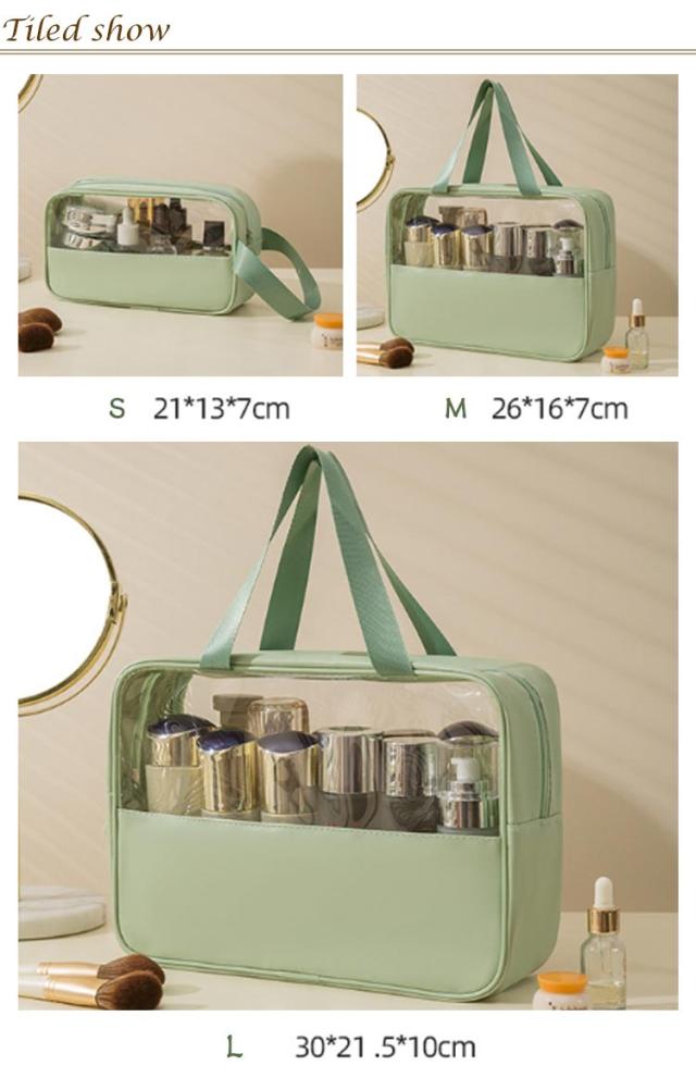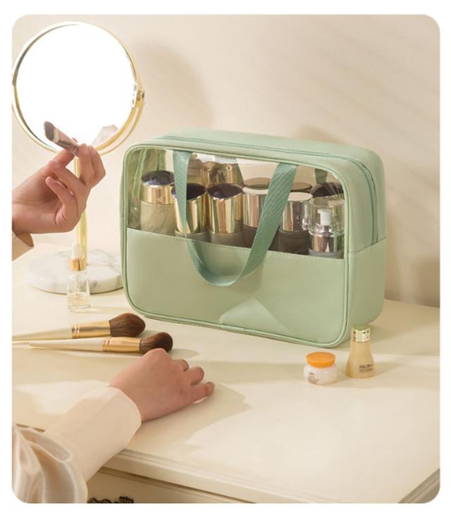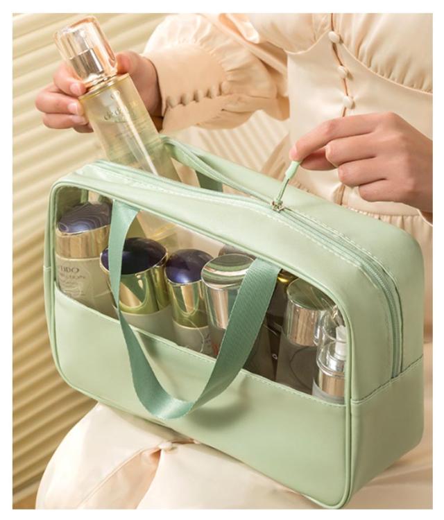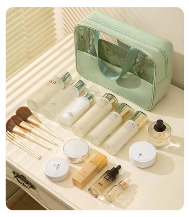 | 温泉、ビーチ、出張、旅行まで楽に使える化粧収納ポーチ。 防水の素材を採用して、濡れた衣類やタオルなどを収納できます。 大きな開口部のジッパーのデザインは持ち運びが簡単で、出し入れも易く。 お洒落で大容量、透明素材なので中身チェックできるのも嬉しい! コンパクトながらもたくさん入るので旅行にも大活躍のアイテムです! 洗濯用品、化粧用品などの小物がきちんと整理して収納します。 | |