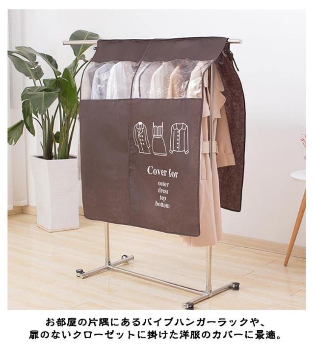 送料無料 ハンガーラックカバー 洋服カバー 不織布 目隠し ホコリよけ 汚れ防止 パイプハンガー カバー 透明窓付き 衣類カバー ハンガーカバー クローゼット収納 保護 防塵 防湿 おしゃれ 整理 インテリア 雑貨