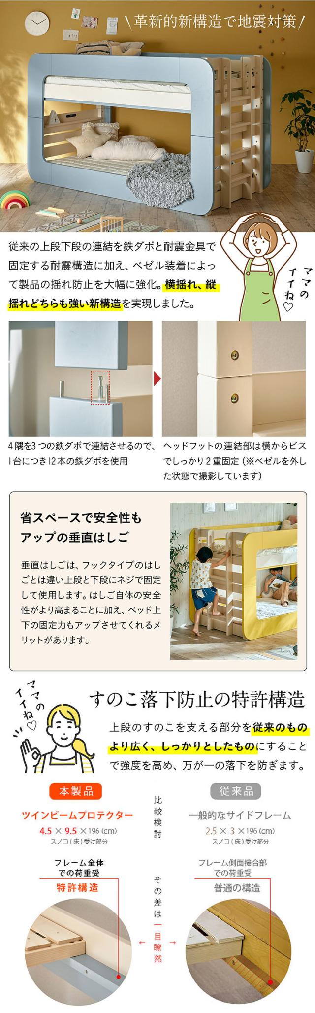 【特許/超耐震構造】宮付き 二段ベッド 2段ベッド Colony(コロニー) 5色対応 二段ベット 2段ベット ロータイプ 分割 分離 子供 子供用ベッド 大人用 コンパクト シングルベッド 耐震仕様 パイン 無垢材 木製 おしゃれ