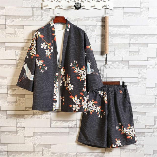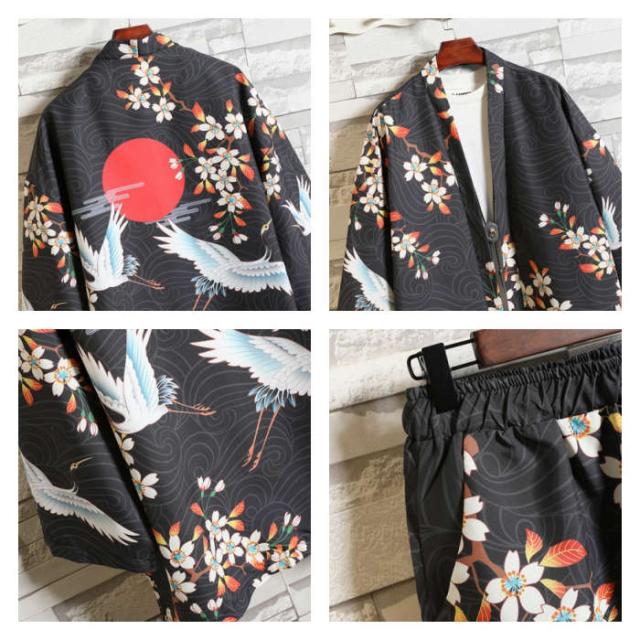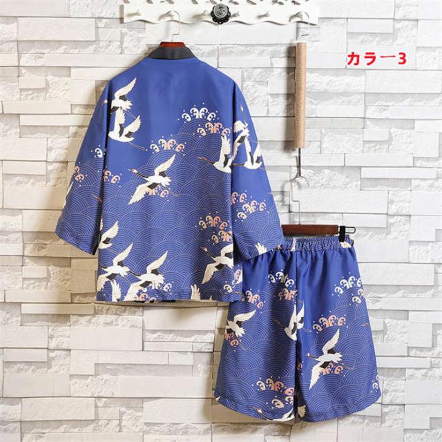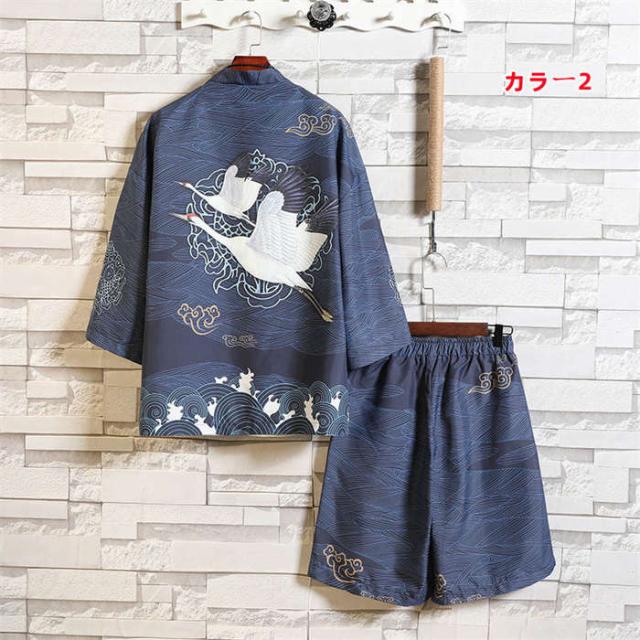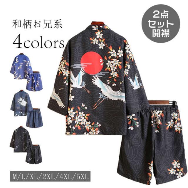 商品名:セットアップ メンズ カーディガン ショーツ 半袖 ハーフパンツ 開襟 大きいザイズ カジュアル 和風 甚平風 ショート丈 ショートパンツ 2点セット トップス パンツ 上下セット おしやれ 夏 和柄 花火大会 お兄系 ビーチ サマーカーディ プリント柄 リゾート ファッション サマー