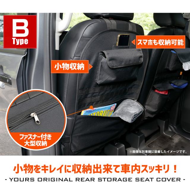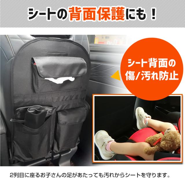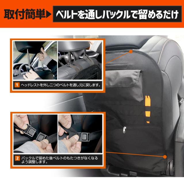 収納にもシート背面の汚れ防止にもオススメ!! 車両に取付確認済み小物の収納、シートの背面保護にも使えるシートバック収納です。 取付は3箇所で固定するだけの簡単取付! 商品を取り付けていてもシートに座る人に干渉しないからずっと付けたままで大丈夫! 本体は傷・汚れに強いポリエステル繊維素材を採用。 |