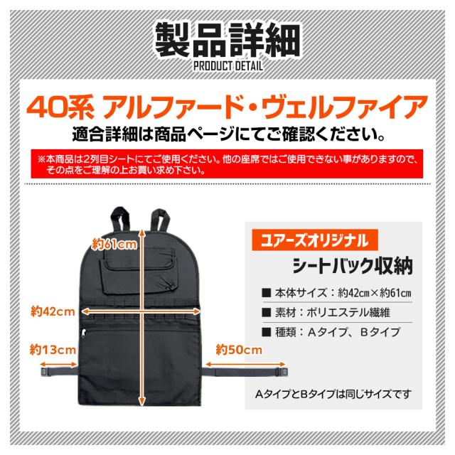 40系 アルファード ヴェルファイア 適合 シートバックポケット [サイズ:約42cm×約61cm]選べる2タイプ