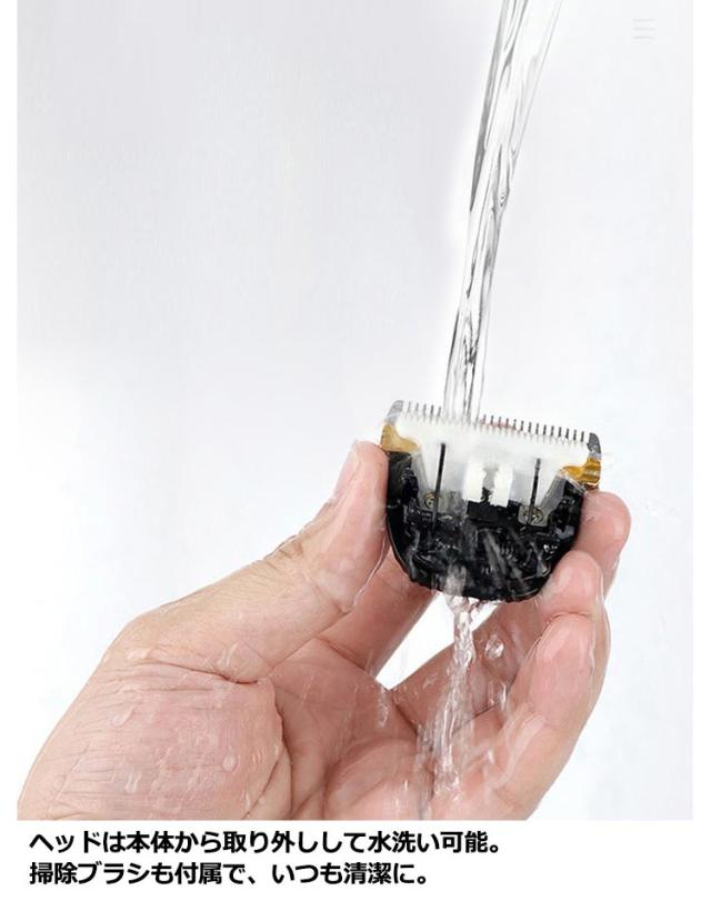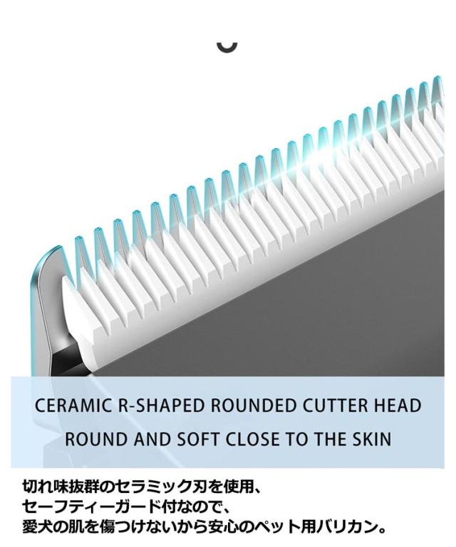 | ペット用静音・コードレスバリカン。 ペットが嫌がらずにご利用いただける静音設計、振動も少ないので、体に負担をかけず怖がらせない静音設計犬用バリカン。 充電式なので、場所を選ばずに使用できるから便利です。うっかり充電を忘れてしまっても、充電しながら使用できる、プロ用の使い勝手の良さ◎ペットバリカン。 切れ味抜群のセラミック刃を使用、セーフティーガード付なので、愛犬の肌を傷つけないから安心のペット用バリカン。 ヘッドは本体から取り外しして水洗い可能。掃除ブラシも付属で、いつも清潔に。 3mm・6mm・9mm・12mmの4種類のアタッチメント付属、本体のダイアルを組み合わせ、微調節も簡単♪お好みのトリミングができます。 このペット用バリカンは初心者でもキュートに、かっこよくトリミングができちゃいます!勿論、業務用にもおすすめ。 | |