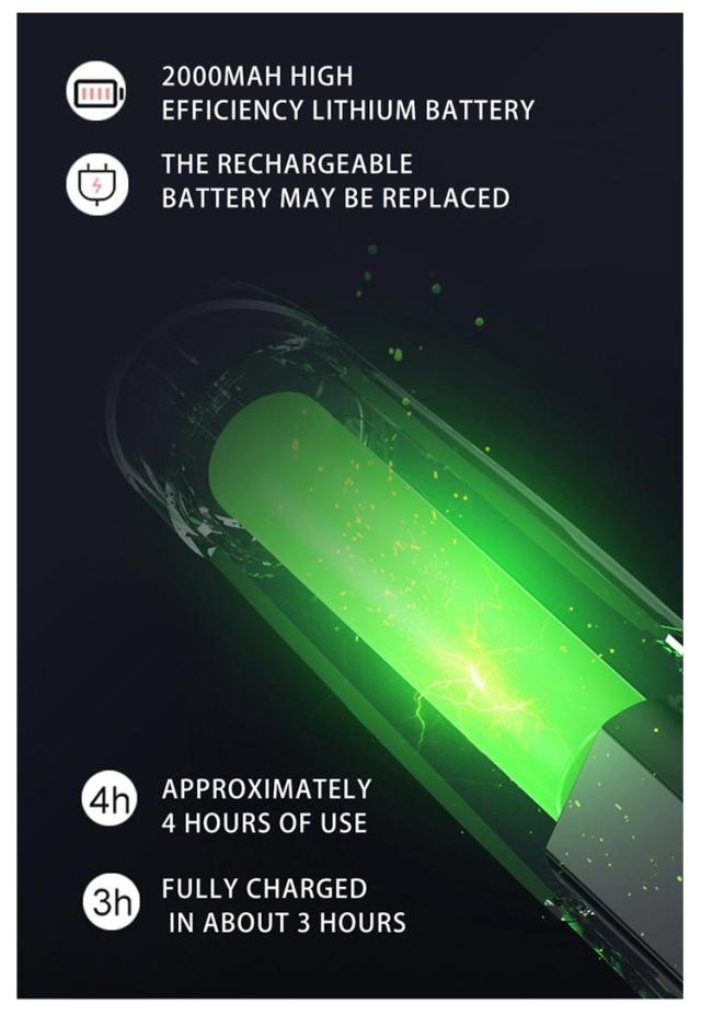 | サイズについての説明 | 7点セット内容:本体×1つ+充電ケーブル×1つ+清掃ブラシ×1つ+アタッチメント×4つ(3mm・6mm・9mm・12mmの4種類) バッテリー容量:2000mAh フル充電時間:約3時間 稼働時間:約4時間 |