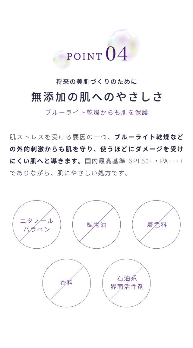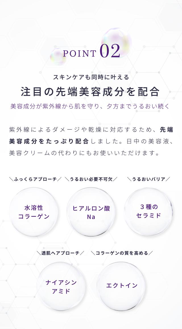 毎日心地よくご使用いただけるよう、肌に溶け込む美容液のようなテクスチャーにこだわりました。化粧下地としても使え、乾燥による化粧くずれも防ぎます。