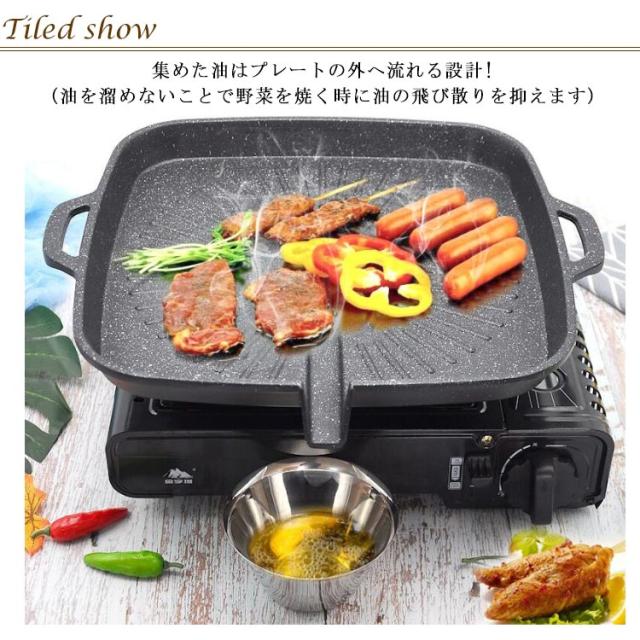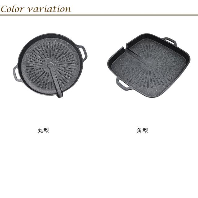 | お肉の余分な油を落とす溝付プレート! 【丸型?角型】【IH/ガス対応】 集めた油はプレートの外へ流れる設計!(油を溜めないことで野菜を焼く時に油の飛び散りを抑えます) サムギョプサルに最適な焼肉プレート! サムギョプサル→「サム」=数字の3、「ギョプ」=層、「サル」=肉 韓国でポピュラーな豚バラ肉の焼肉料理。 豚肉をカリカリに焼き、ナムル、キムチ、白髪ネギと一緒にチシャバに包んで味噌ダレやごま油をつけて食べる料理です。 油の多い豚バラ肉の油を落とし、野菜と一緒に食べられるので、 よりヘルシーです! | |