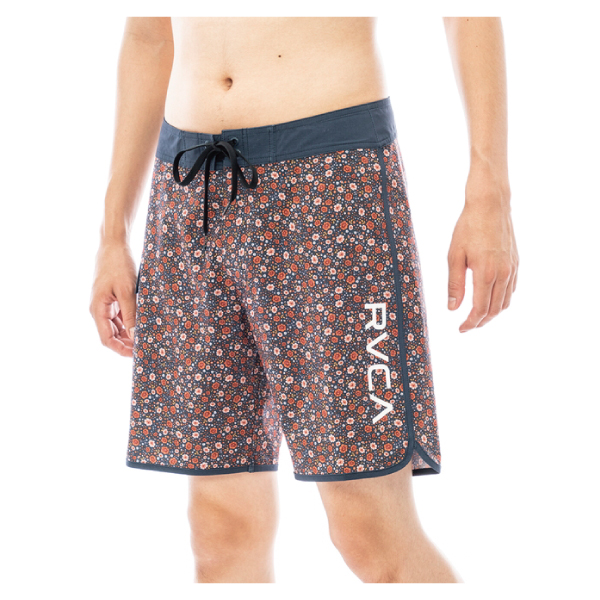 | | 小花柄を全面に散りばめたボードショーツ。タテヨコに伸縮する4WAYストレッチを備え、ウエストは肌ズレしにくいソフトタッチな素材を使用しています。左脚にRVCAロゴ、右側面にフラップポケットとサークルロゴパッチを施しました。膝が見える18インチのショート丈で、リサイクル素材を使用しています。 |