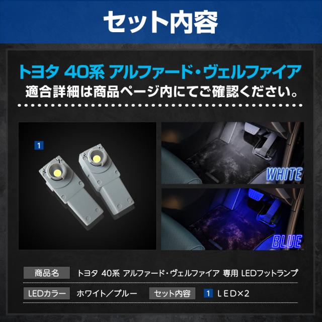 40系 アルファード ヴェルファイア 適合 LEDフットランプ 2個 【全2色:ブルー/ホワイト】