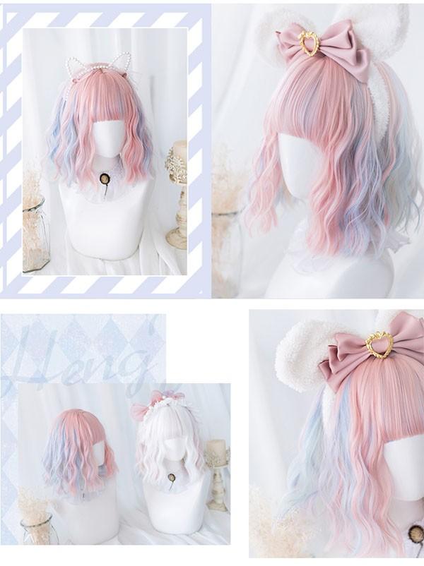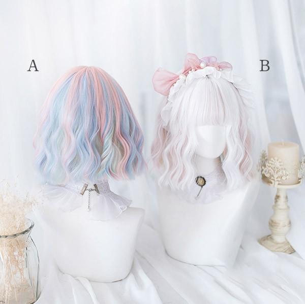 【商品名】ウィッグ レディース フルウィッグ ショート 短髪 メッシュ グラデーション 巻き髪 ゆめ可愛い ぱっつん前髪 前髪あり 可愛い かわいい 大人用 コスプレ ロリータ ゴスロリ コスチューム 原宿風 仮装 超自然 かつら wig Lolita 小顔 文化祭 イベント 学園祭 ハロウィン dq078n1n1l9