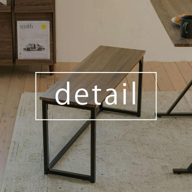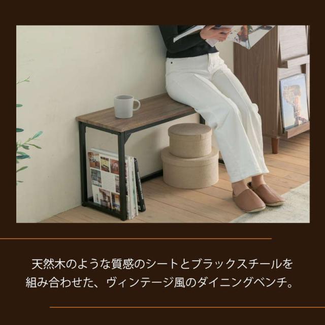 ●天然木のような質感のシートとブラックスチールを組み合わせた、ヴィンテージ風のダイニングベンチ。