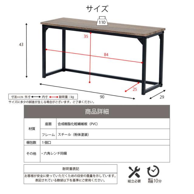 ダイニングベンチ チェア 幅90cm 玄関ベンチ ダイニングチェア ロングスツール 長椅子 座面高42cm