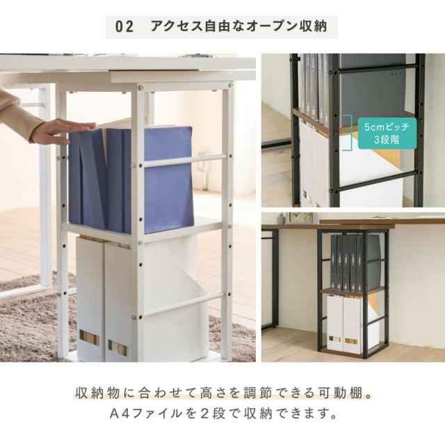 ●天板下にはA4ファイルが収納できる収納ラック付き。