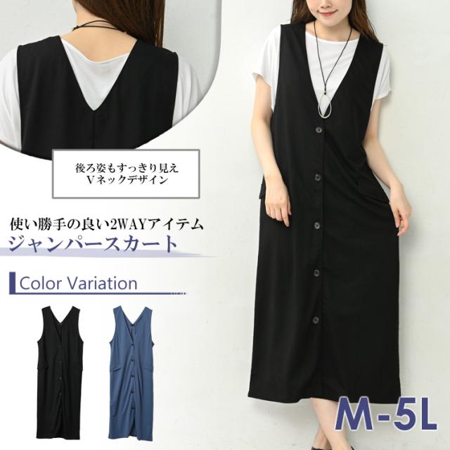 大きいサイズ レディース ジャンパースカート ジレ メール便対応 Vネック ノースリーブ ワンピース M/LL/3L/4L/5L ゆったりサイズ ぽっちゃり女子 プラスサイズ