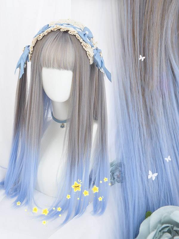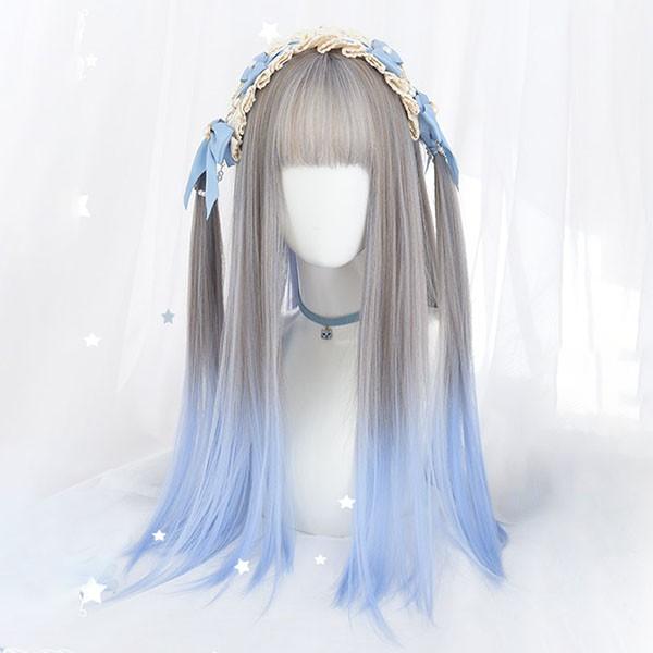 【レビュー投稿で+5%還元】ウィッグ レディース フルウィッグ ロング グラデーション ストレート グレー ブルー ぱっつん前髪 前髪あり 可愛い かわいい 大人用 コスプレ ロリータ ゴスロリ コスチューム 原宿風 仮装 超自然 かつら wig Lolita 小顔 文化祭 イベント