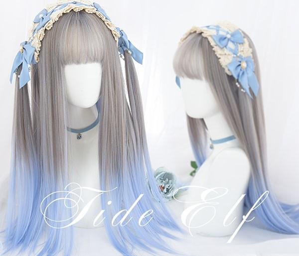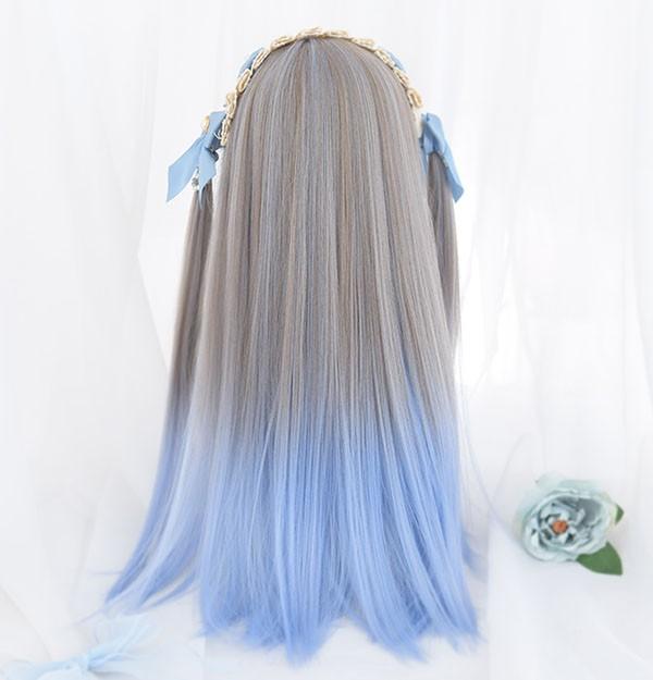 【商品名】ウィッグ レディース フルウィッグ ロング グラデーション ストレート グレー ブルー ぱっつん前髪 前髪あり 可愛い かわいい 大人用 コスプレ ロリータ ゴスロリ コスチューム 原宿風 仮装 超自然 かつら wig Lolita 小顔 文化祭 イベント 学園祭 ハロウィン dq068n1n1l9