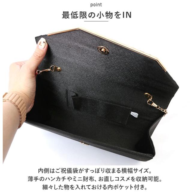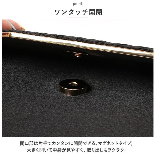| 商品説明 | ・パーティーや結婚式のお呼ばれシーンで大活躍♪おしゃれなパーティーバッグが新登場。 【上品な華やかさ】 ・程よい光沢感のあるサテン生地を使用。フラップ部分に施したプリーツ加工が、デザインのアクセントに。 【持ち方を選べる3way仕様】 ・フラップ内側にフックを装備。長いチェーンストラップを取り付けてショルダーバッグ、短いチェーンを使ってハンドバッグ、チェーンを外せばクラッチバッグに♪ 【ワンタッチ開閉】 ・開口部は片手でカンタンに開閉できる、マグネットタイプ。大きく開いて中身が見やすく、取り出しもラクラク。 【最低限の小物をIN】 ・内側はご祝儀袋がすっぽり収まる横幅サイズ。薄手のハンカチやミニ財布、お直しコスメを収納可能。細々した物を入れておける内ポケット付き。 【誰でも持ちやすいデザイン】 ・どんなドレススタイルにも合わせやすい、シンプルなつくり。幅広い年代で使えるカラーバリエーション! |