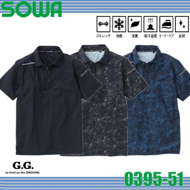 桑和 0395-51 半袖ポロシャツ シャツ SOWA ストレッチ 吸汗速乾 イージーケア 冷感 消臭 (社名ネーム一か所無料)