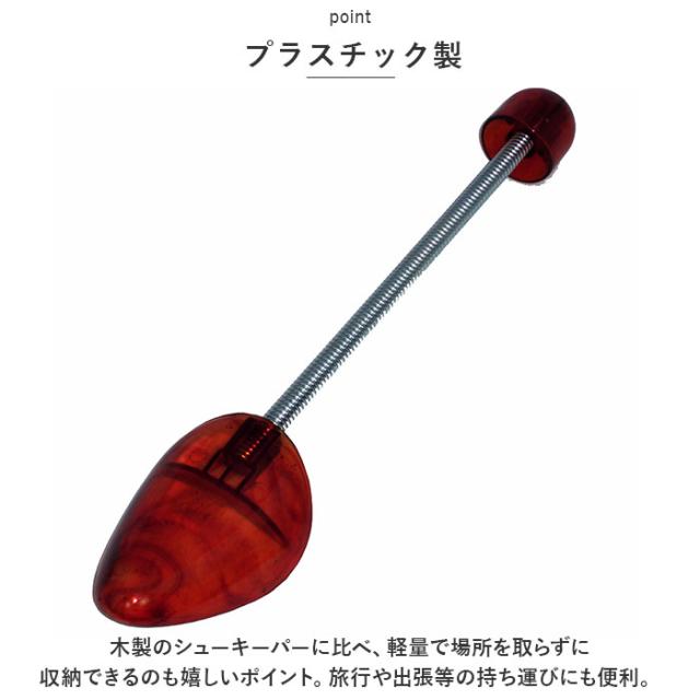 | 商品説明 | ・お気に入りの靴の型崩れを防いで長持ち♪「GT シューズキーパー」が発売◎ 【様々な靴に対応】 ・ほとんどの靴型にフィットして靴の形を整えるアイテム。このシューズキーパー1本でいつも履くスニーカーから革靴等のオシャレ履き用の靴まで対応! 【形をキープ】 ・伸縮性に富んだバネの力でアッパーに適度なテンションをかけ、ファブリックの凹みやシワを整える◎ ・木製のシューツリーではセットしづらいブーツやハイカットのスニーカーもセットしやすい作り。 【プラスチック製】 ・木製のシューキーパーに比べ、軽量で場所を取らずに収納できるのも嬉しいポイント。 ・旅行や出張等の持ち運びにも便利。 |