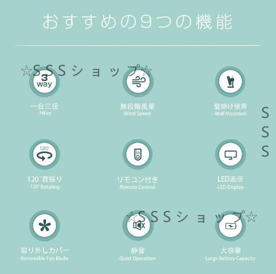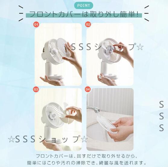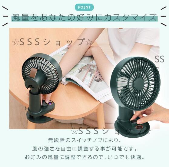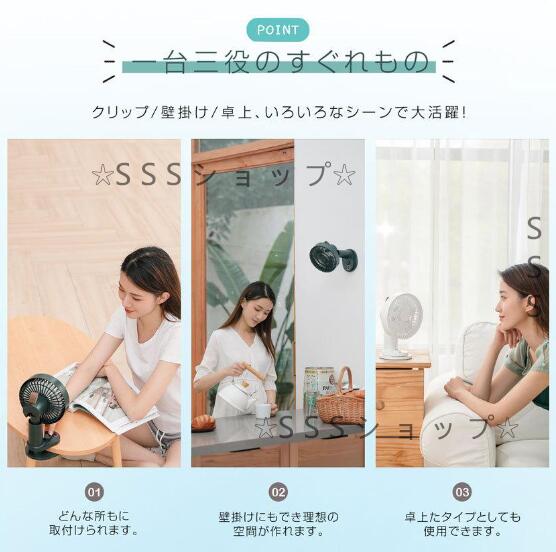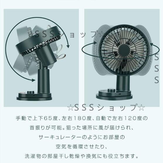 扇風機 卓上扇風機 自動首振り クリップ式 小型 usb 充電式 リモコン付き おしゃれ 静音 クリップ 卓上 スタンド式 吊り下げ式 無段階風量