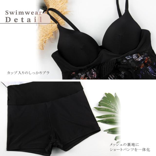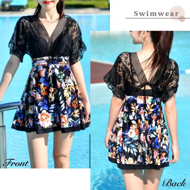 | 商品名 | レース&花柄切り替えワンピース水着 |