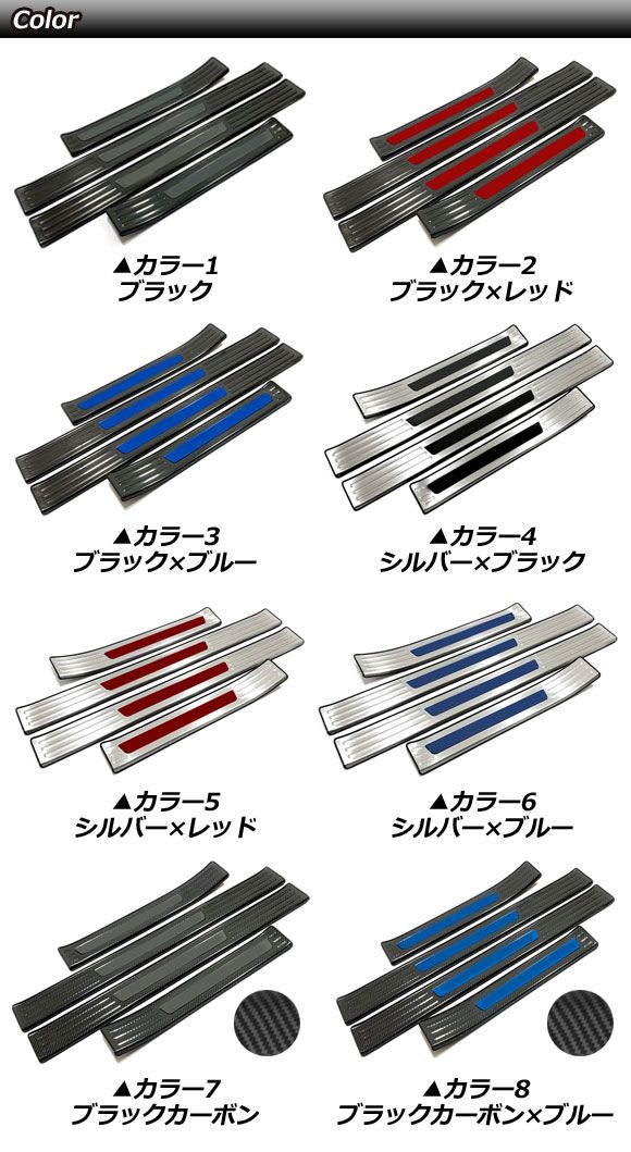 スカッフプレート 外側 ホンダ シビック FL1 タイプR不可 2021年09月〜 カラー8 ステンレス製 入数:1セット(4個) AP-SG313-COL8 キッキングプレート ステップガード キックプレート ステッププレート シルプレート エントランスモール サイドステップガード サイドドア ドア ドアステップ サイドステップ シル ドアシル サイドシル スカッフ ステップ プレート カバー フレーム ガーニッシュ リム トリム ベゼル プロテクト プロテクター 汚れ 泥 傷予防 傷付き防止 保護 ガード ステンレス ステン 鋼 ブラック カーボン BLACK CARBON 黒 カーボン調 青 BLUE 内装 内装パーツ パーツ インテリア ドレスアップ カスタム カスタマイズ 装飾 アクセント アクセサリー CIVIC FL FL型 LX EX FL系 ハッチバック 本田 HONDA 本田技研工業 アクセサリ automobile motorcar オートモービル モーターカー カー 車 自動車 車両 505978240