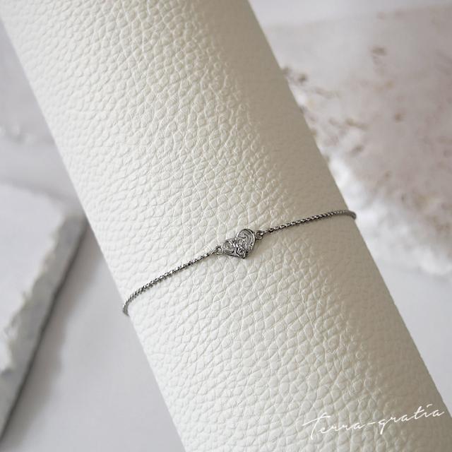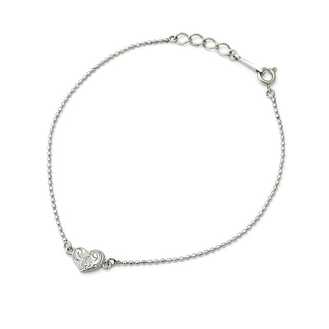 かわいいハートモチーフにプルメリア(花)とスクロール(波)の繊細な模様がデザインされたハワイアンブレスレットです。