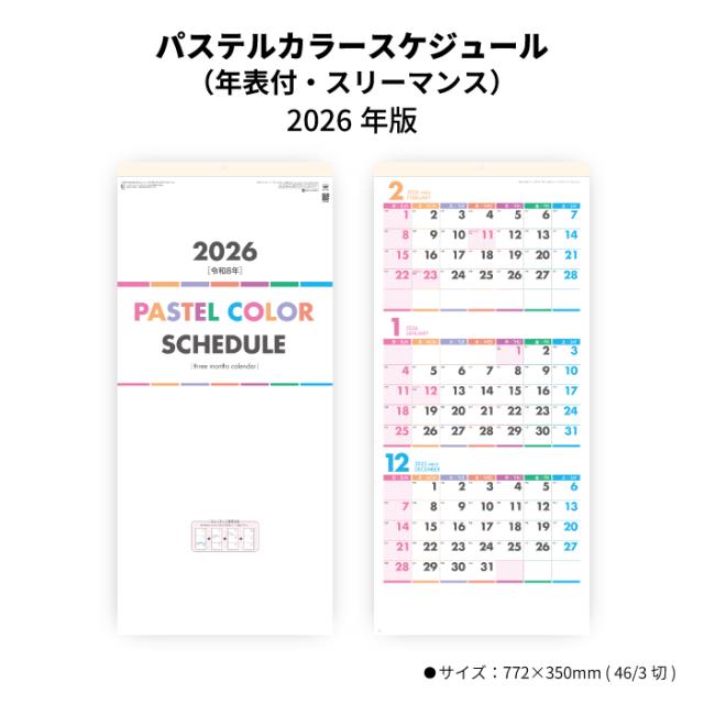 | 2026年 壁掛け パステルカラースケジュール 年表付 スリーマンス SG315 商品詳細 | |