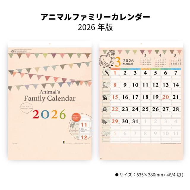 | 2026年 壁掛け アニマルファミリーカレンダー NK31 商品詳細 | |