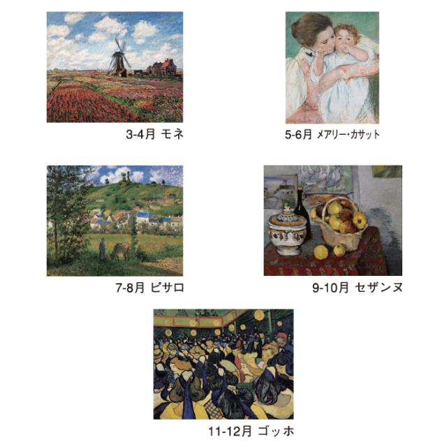 | 商品特徴 | ・オルセー美術館の名作から人気の高い作品を厳選 ・鮮明なフィルム印刷による豪華カレンダー ・カレンダーを綴る部分を金具ではなく、厚紙を使用しホットメルトという接着剤を使用した、環境に優しいエコカレンダーになります。 ・廃棄する時も分別の必要がない、手間もかからず環境にも配慮した商品です。 |