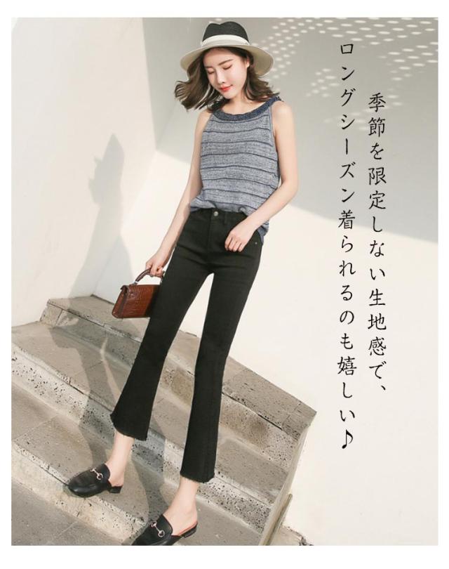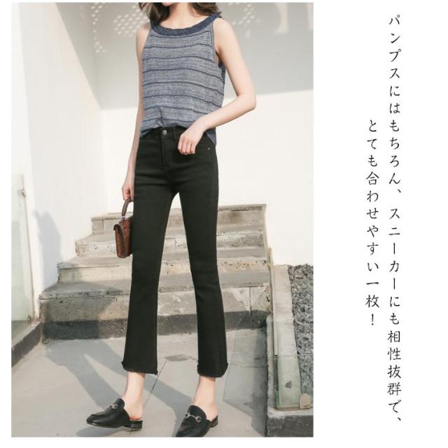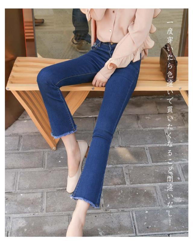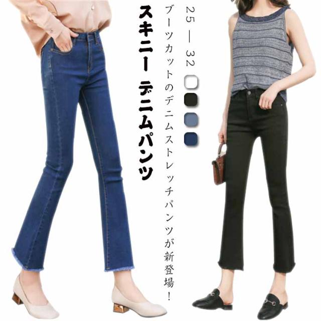 ブーツカット スキニー デニムパンツ 送料無料 レディース 大きいサイズ フレア デニム パンツ 8分丈 9分丈 春夏春 美脚 デニム フリンジジーンズ ジーパン 裾フレア ママ 母 OL オフィス 20代 30代 40代