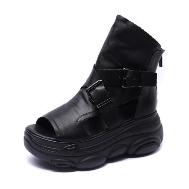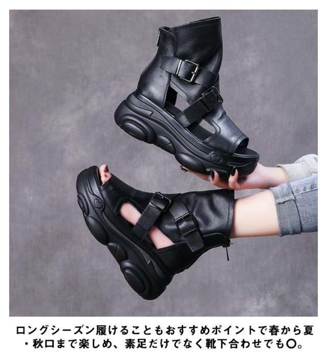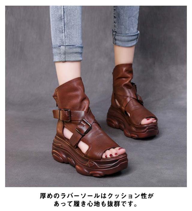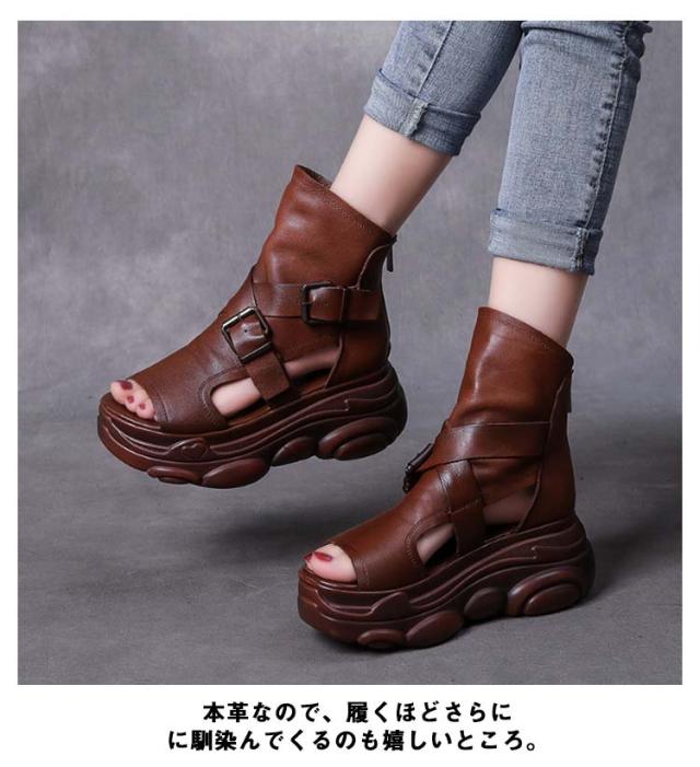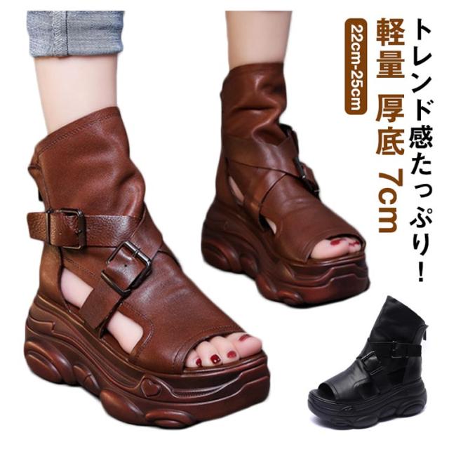 サンダル レディース ブーツサンダル ハイカット 厚底 7cm 本革 サマーブーツ オープントゥ バックファスナー レザーサンダル 牛革 厚底サンダル 軽量 夏ブーツ 疲れにくい 痛くない 歩きやすい カジュアル おしゃれ クロスベルト