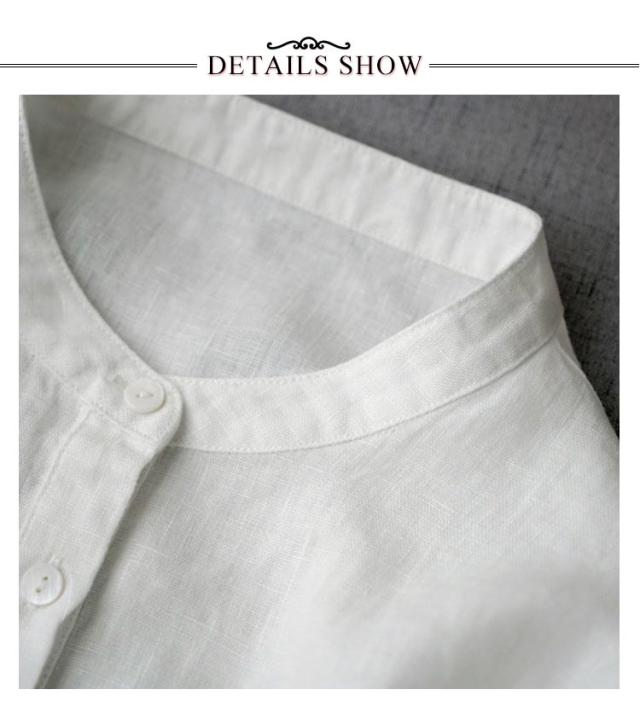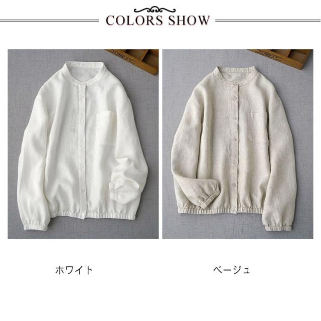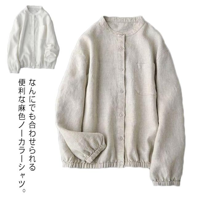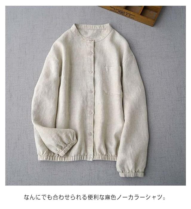ノーカラーシャツ リネン 長袖 レディース ナチュラル ゆったり おしゃれ 着回し トップス 体型カバー ナチュラル レイヤード 重ね着 定番 クールネック ラウンドネック シンプル ベージュ 送料無料